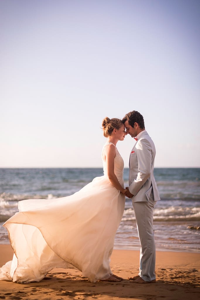 • Mieux vaut privilégier une plage peu fréquentée. Si votre endroit préféré est très touristique et que c’est essentiel pour vous de vous marier là, pensez à vérifier les extrémités de la plage ou les zones où il est moins facile de se baigner. Il y a généralement moins de monde et la végétation est souvent un peu plus dense, ce qui rend le décor encore plus beau !