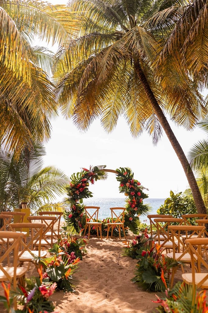 • On ne le dira jamais assez : prévoyez un plan B en cas d’aléas météo ! Même si le climat tropical offre des décors merveilleux pour une cérémonie de mariage, ces paysages de rêve s’accompagnent d’une météo parfois capricieuse. Pour éviter de scruter le ciel pendant les jours précédant le jour J à la recherche d’une information rassurante, prévoyez un endroit à l’abri où vous pourrez reporter la cérémonie.