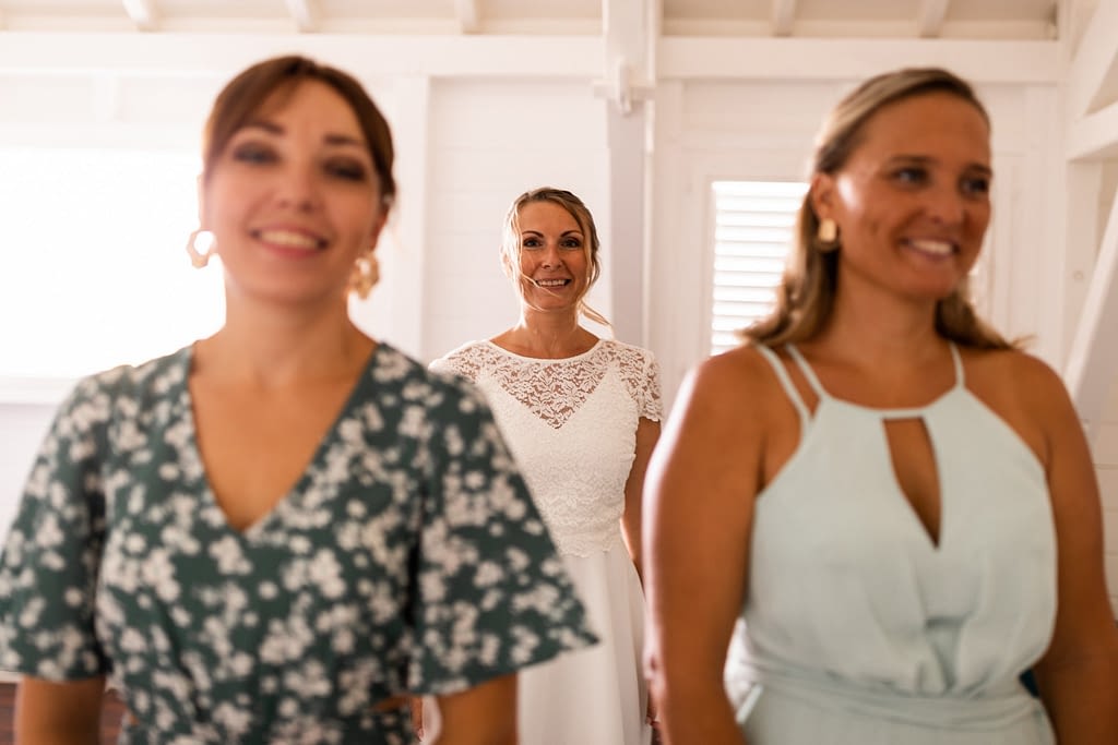 Vous avez choisi des demoiselles d’honneur ou des garçons d’honneur ? Pourquoi ne pas leur réserver ce petit moment où ils vous découvrent dans votre tenue préférée ? C’est l’occasion de leur montrer qu’ils sont importants pour vous, et que vous aviez envie de les inclure encore plus dans votre mariage !