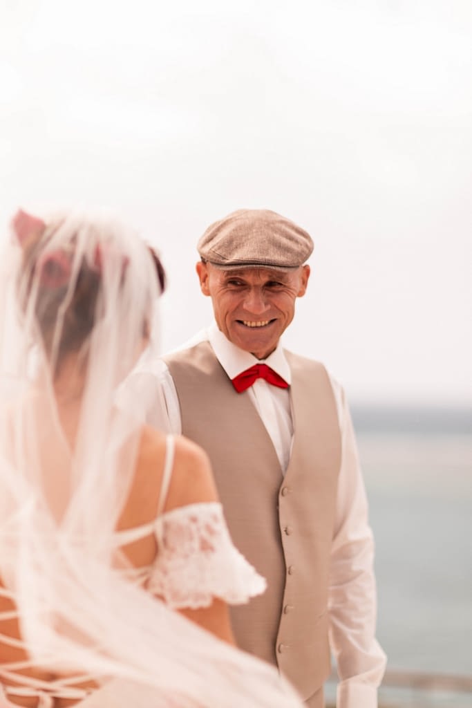 Marier son enfant ou son petit-enfant est forcément un moment très fort en émotions. Et l’instant où ils vous découvrent dans vos plus beaux atours… ça rend le mariage très très réel d’un coup ! Leur proposer un first look, c’est l’occasion parfaite pour eux de profiter de ce moment en toute intimité plutôt qu’au milieu des invités. Et photos magiques garanties !