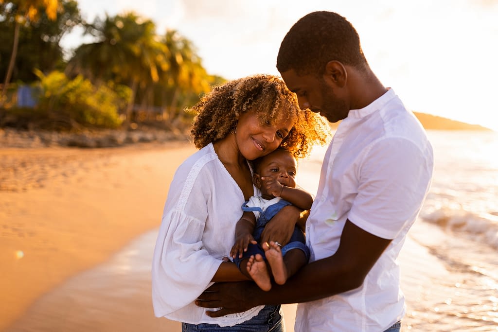 La Guadeloupe regorge de plages magnifiques, et Clugny, à Sainte-Rose, fait partie de ces lieux où la magie opère à chaque coucher de soleil. C’est ici que j’ai eu le plaisir de capturer une douce séance photo en famille, un moment hors du temps où le naturel et l’authenticité étaient à l’honneur.